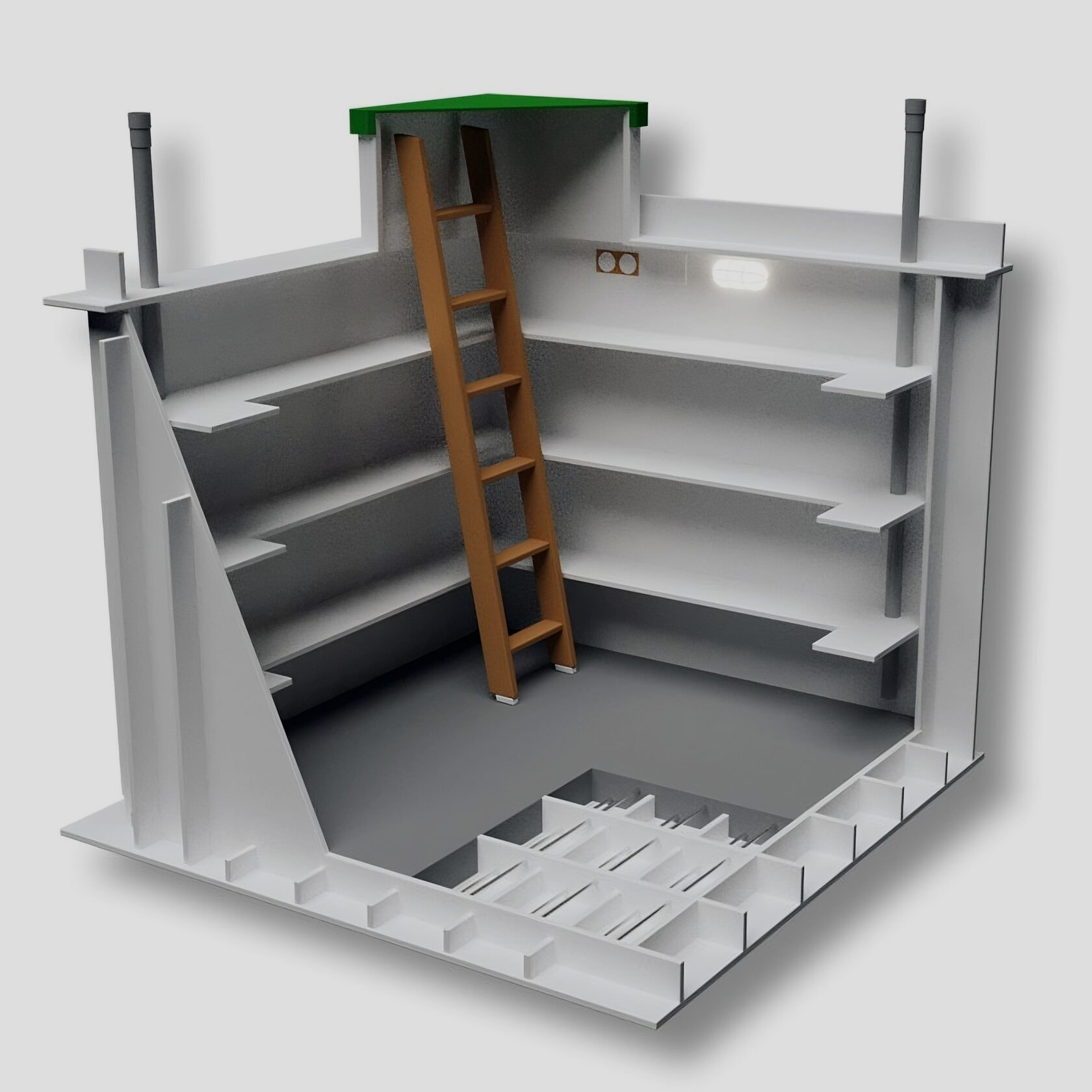 Долговечность - срок службы пластикового погреба "Атлант" составляет более 50 лет, и он не требует регулярного обслуживания, ремонта и покраски, как бетонные или металлические аналоги.